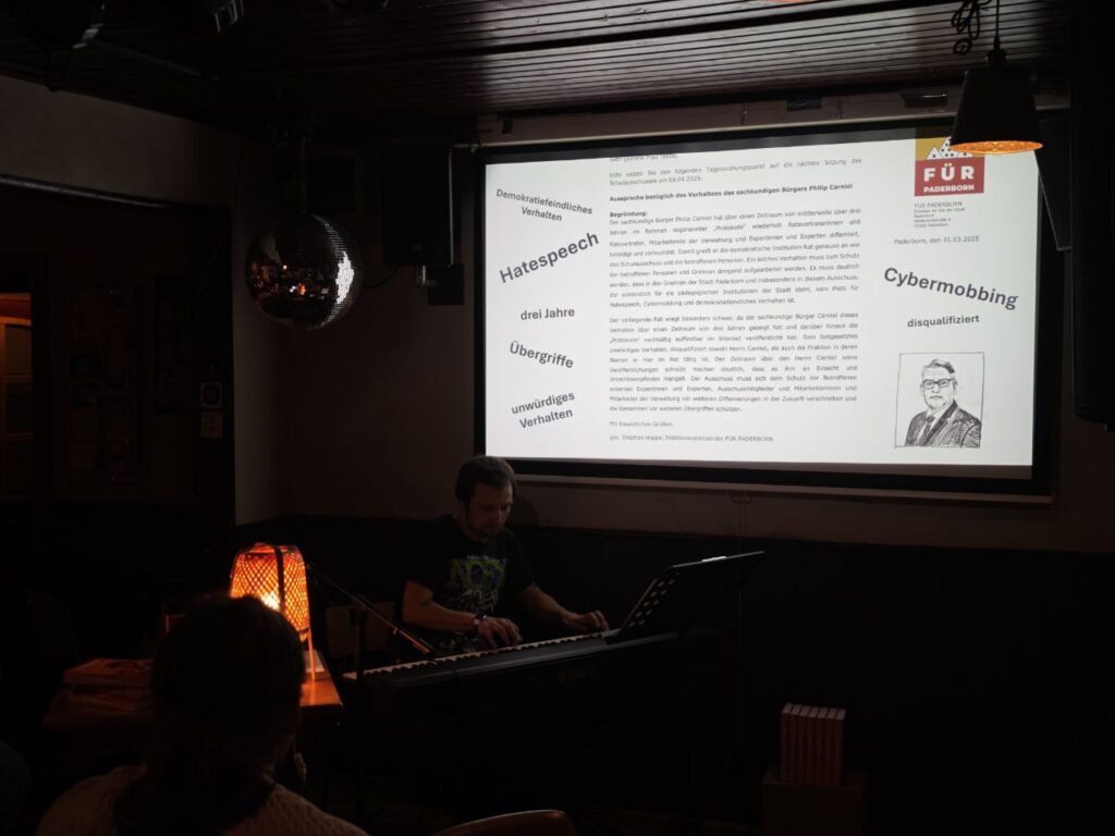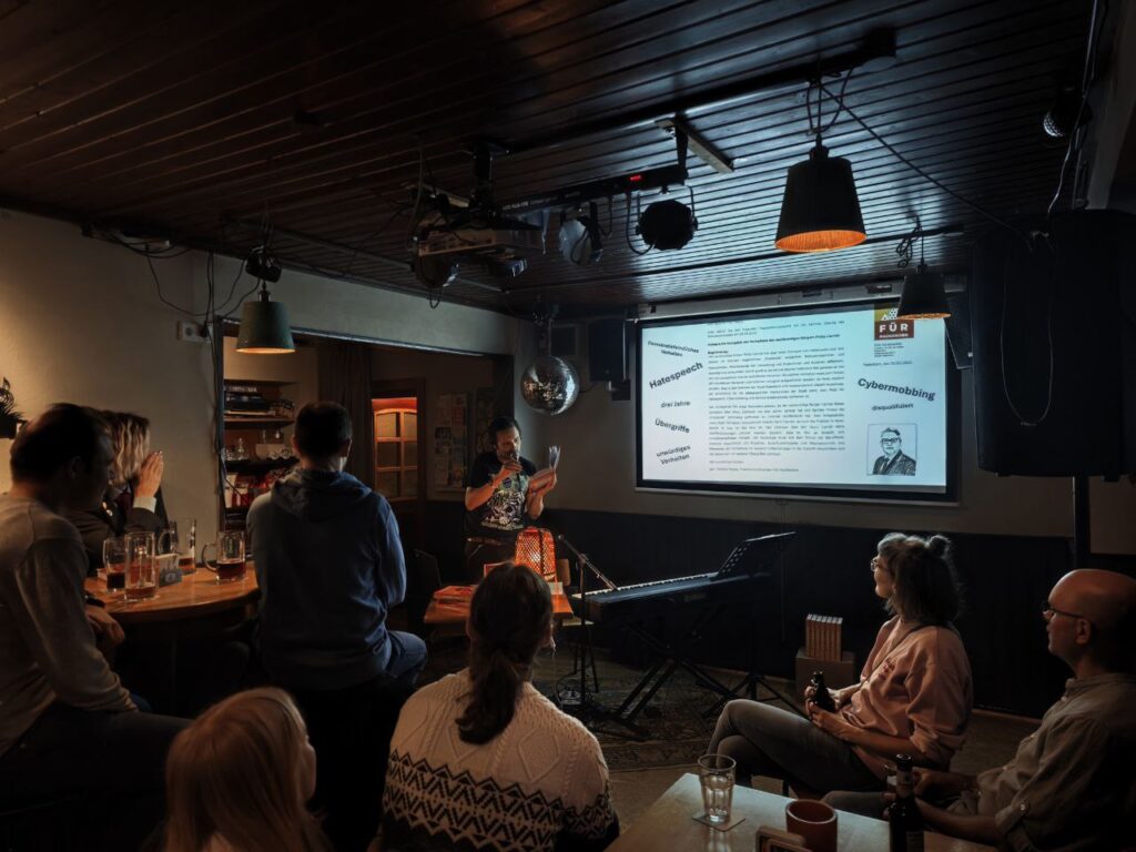 Neben gelesenen Textpassagen berichtete unser sachkundiger Bürger offen aus dem Skandalbetrieb: über Anzeigenfreude, Pressearbeit, politische Empfindlichkeiten – und darüber, wie dünn die Haut wird, sobald jemand mitschreibt.